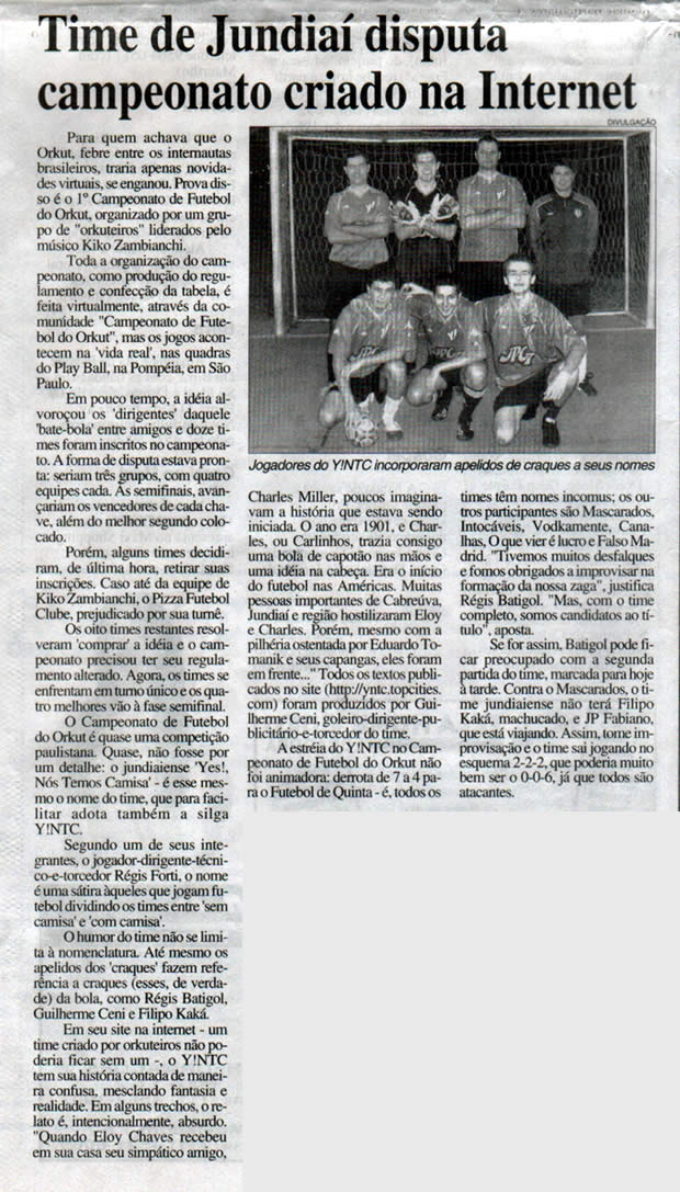 Assunto: Página inteira na seção de esportes, sobre participação do Yes no prêmio iBest e também conta a história do time